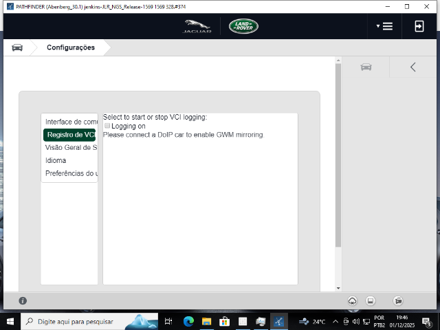 Já está instalado em HD que você irá conectar dentro do seu notebook, o software mais recente do JLR Pathfinder .