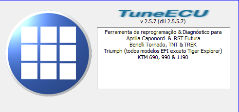 O TuneECU 2.5.7 para Windows é uma ferramenta gratuita de reprogramação e diagnóstico para unidades de controle do motor (ECUs) usadas em muitas motocicletas EFI mais antigas das marcas Triumph, Aprilia, KTM e Benelli. Ele funciona com ECUs Sagem, Keihin e Walbro para ler e gravar mapas, monitorar dados de sensores em tempo real e executar testes de oficina para manutenção ou solução de problemas. Continua útil em um ambiente de oficina para modelos antigos compatíveis, quando usada com uma interface OBD USB baseada em FTDI e, para algumas marcas, com cabos adaptadores específicos.